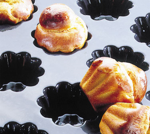 Flexipan® Brioche Mold, 24 per sheet, 3-1/2 oz. cap, 3-1/8" dia. x 1-1/4"H, sheet size: 23-3/4"L x 15-3/4"W, non-stick, withstands temperatures from -40°F to +580°F, flexible, reusable 2,000 to 3,000 times, food grade silicone, NSF, made in France
