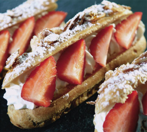 Silform® Eclair Mold, 18 per sheet, 5" dia. x 1"H, sheet size: 23-3/4"L x 15-3/4"W, heat resistant to 350°F, silicone aerated knitted fiberglass fabric, NSF, made in France