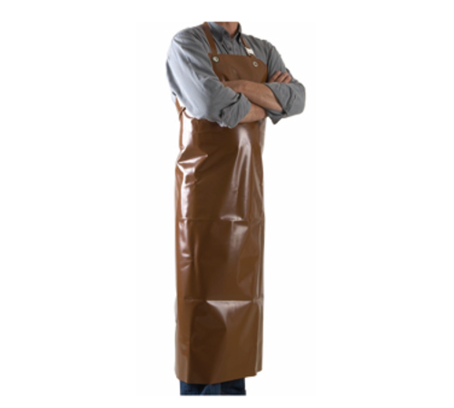 Apron, 45"L x 35"W, adjustable neck strap, elastic hook on back, polyurethane, brown chocolate