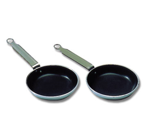 Blini Pan, 4-3/4" dia. x 1"H, 1/12" thickness, riveted stainless steel handle, 4-layer non-stick coating, aluminum with grey lacquer finish, PFOA-free, suitable for gas, electric, ceramic, and halogen hobs, except induction