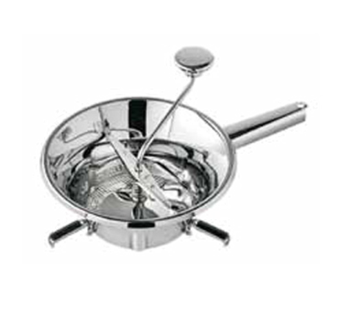 Food Mill, 9-1/2" dia., purees and strains simultaneously, crank handle, includes (3) interchangeable grids, (fine, medium and large), stainless steel