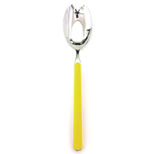 Salad Serving Spoon, 9-1/5", notched, dishwasher safe, welded nylon & fiberglass resin handle, 18/10 stainless steel, yellow, Fantasia