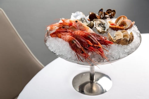 Seafood Display Stand, 101-2/5 oz., 12-5/8" dia. x 7-1/2"H, round, with grill, elevated base, dishwasher safe, 18/10 stainless steel, Plateau Royal