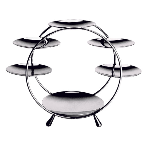 Presentoire, 4-tier, 18-7/8" x 9-2/3" x 11-4/5"H, (1) 9-1/2" dia. plate and (5) 7-7/8" dia. plates, round, footed, dishwasher safe, 18/10 stainless steel, Giotto