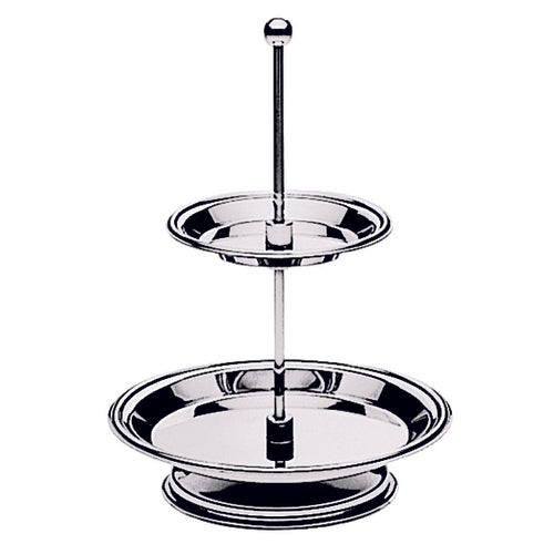 Petit-Fours Stand, 2-tier, 4-3/4" dia. top tier, 7-1/2" dia. bottom tier, 10-5/8" overall height, round, dishwasher safe, 18/10 stainless steel, Michelangelo