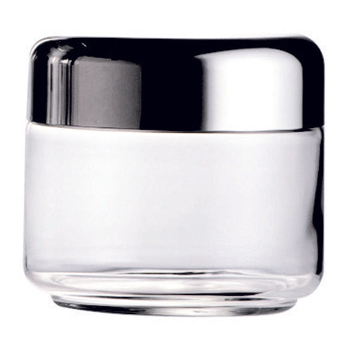 Storage Container, 16-15/16 oz., (1/2 liter), 4" dia. x 4"H, round, dishwasher safe, glass & 18/10 stainless steel, Coccola