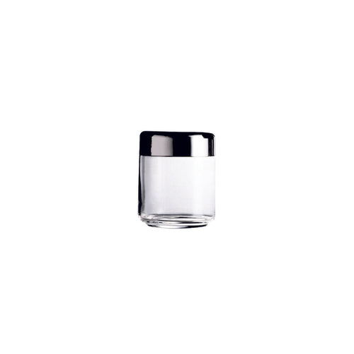 Storage Container, 25-1/3 oz., (3/4 liter), 4" dia. x 5-2/5"H, round, dishwasher safe, glass & 18/10 stainless steel, Coccola