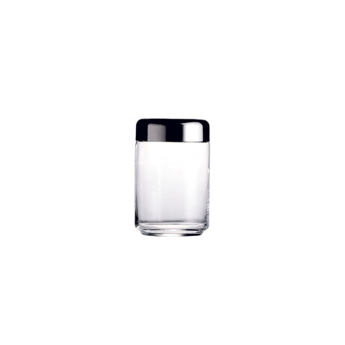 Storage Container, 33-4/5 oz., (1 liter), 4" dia. x 6-3/5"H, round, dishwasher safe, glass & 18/10 stainless steel, Coccola