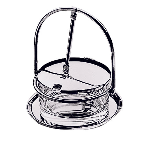 Parmesan Cheese Basin, 6-3/4 oz., 4-4/5" dia. x 2-1/5"H, round, with handle & notched, hinged lid, dishwasher safe, 18/10 stainless steel & glass, Gala