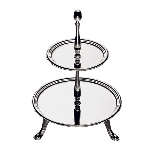 Petit-Fours Stand, 2-tier, (1) 7-1/2" dia. plate and (1) 5-1/8" dia. plate x 11-3/8"H, round, dishwasher safe, 18/10 stainless steel, Palace