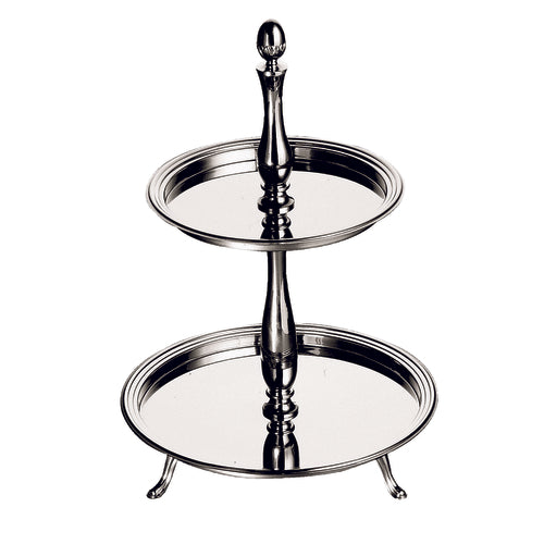Fruit Holder, 2-tier, (1) 13-3/4" dia. bottom tier and (1) 10-5/8" dia. top tier, 19-5/8"H, round, dishwasher safe, 18/10 stainless steel, Palace