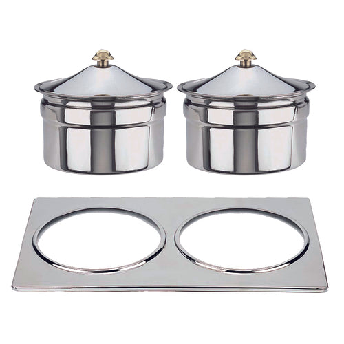 Soup Station, for Chafing Dish #207199, (2) 8-1/2" dia. compartments, 20-1/2"L x 12-1/4"W, rectangular, dishwasher safe, 18/10 stainless steel, Palace