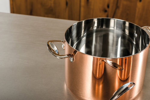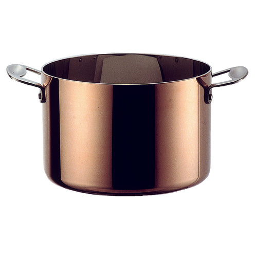 Pot, 4-1/4 qt. (4 liter), 7-7/8" dia., round, deep, riveted handles, includes lid, safe for electric/gas/halogen/ceramic/oven, dishwasher safe (hand wash recommended), tri-ply: copper exterior, aluminum core, 18/10 stainless steel interior, Toscana