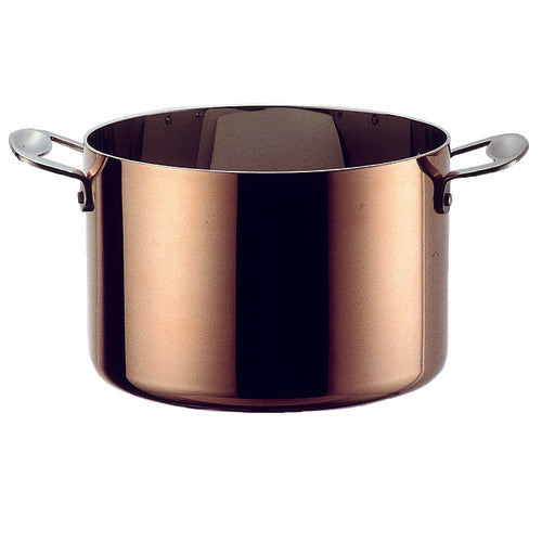 Pot, 8-1/8 qt. (7-3/4 liter), 9-7/16" dia., round, deep, riveted handles, includes lid, safe for electric/gas/halogen/ceramic/oven, dishwasher safe (hand wash recommended), tri-ply: copper exterior, aluminum core, 18/10 stainless steel interior, Toscana