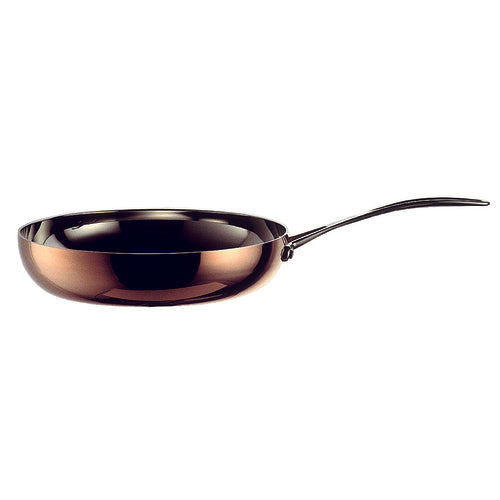 Frying Pan, 10-1/2" dia., round, with (1) riveted handle, includes lid, safe for electric/gas/halogen/ceramic/oven, dishwasher safe (hand wash recommended), tri-ply: copper exterior, aluminum core, 18/10 stainless steel interior, Toscana