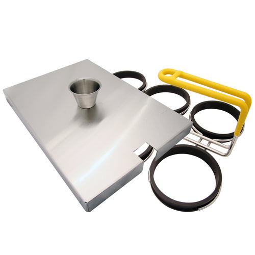 In-Line Egg Ring, (6) 3-3/4" diameter removable rings attached to wire handle, non-stick coating, includes cover