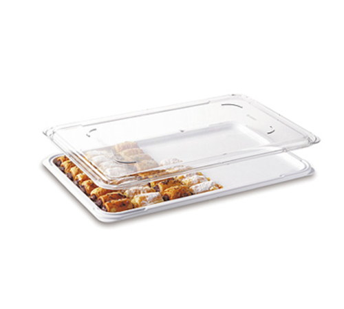 Araven Expo-Tray, rectangular, 20-7/8" x 12-3/4", GN 1/1 size, transparent clip storage lid, stackable, drying supports, scratch resistant, SAN, white