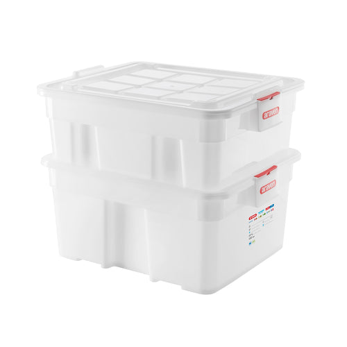 Araven Defrost Kit, 18-1/2 gallon, 25-5/8" x 21" x 11-3/4", includes: (1) holding box, (1) perforated bottom drip box, (1) lid, integrated label, temperature resistant 194°F to -40°F, dishwasher safe, high-density polyethylene, white, NSF