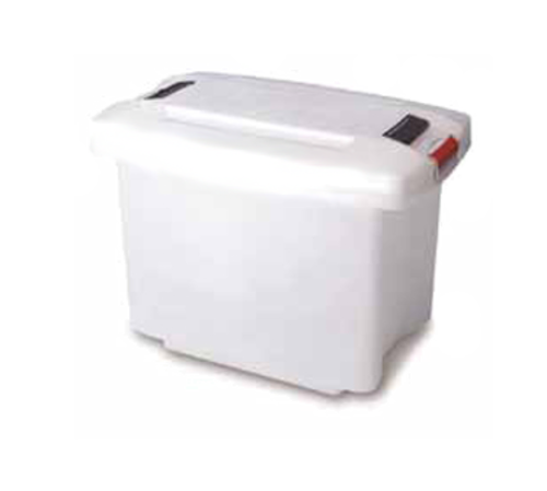 Araven Food-Bac Transport Container, 13.2 gallon, 23-5/8" x 15-1/2" x 16", without wheels, lid with metal fasteners, Colorclip® coded, label slot, stackable, vent hatch, dishwasher safe, high-density polyethylene, HACCP compliant