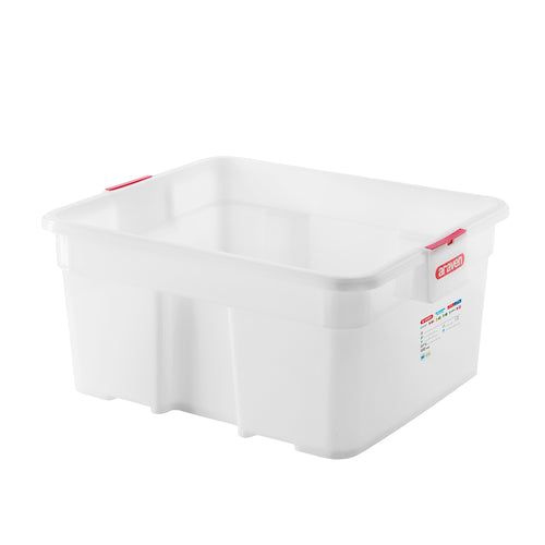 Araven Food Box, 18 gallon, GN 2/1, 25-5/8" x 20-7/8" x 11-3/4", nestable & stackable, food identification & color coding systems integrated, ergonomic handles, temperature range -40°F to 194°F (-40°C to 90°C), polyethylene, transparent, BPA free, HACCP compliant