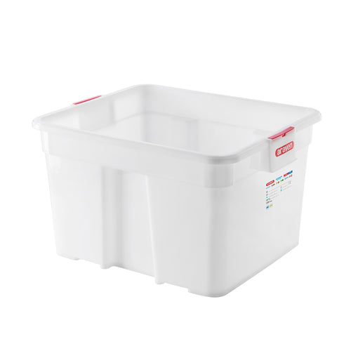 Araven Food Box, 23 gallon, GN 2/1, 25-5/8" x 20-7/8" x 15-3/4", nestable & stackable, food identification & color coding systems integrated, ergonomic handles, perforated, temperature range -40°F to 194°F (-40°C to 90°C), polyethylene, transparent, BPA free, HACCP compliant