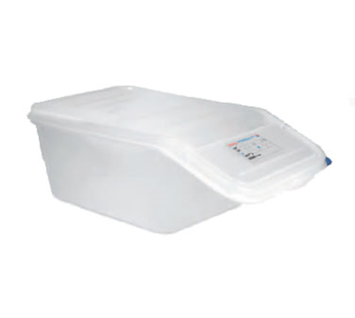 Araven Ingredient Bin, 6 gallon, GN 1/1 size, 22-1/4" x 13-3/8" x 8", Colorclip® coded (2) lid FIFO system, permanent label, (2) side handles, stackable, translucent polypropylene, dishwasher safe, HACCP compliant