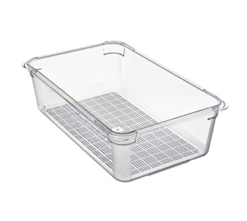 Araven Food Pan, 20-7/8" x 12-3/4" x 6", GN 1/1 size, perforated, break/stain-resistant, -40° F to 210° F temperature range, dishwasher safe, polycarbonate, clear, NSF, one container can be used to cover another, HACCP compliant