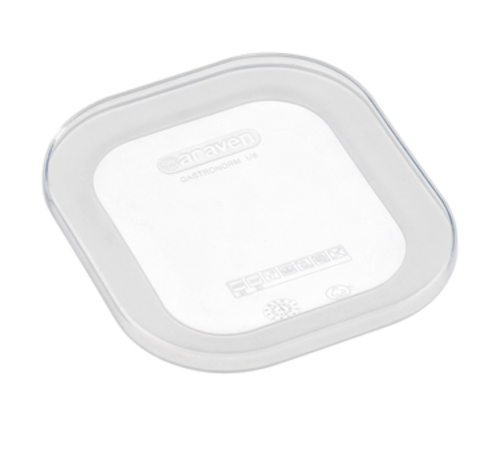 Araven Food Storage Lid, GN 1/6 size, -40° F to 392° F temperature range, airtight, stackable with lid on, silicone, transparent, HACCP compliant