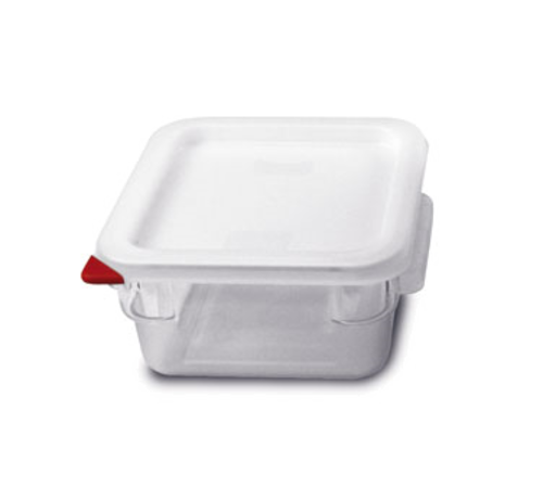 Araven Food Storage Container, square, 2.1 qt., 7-1/8" x 7-1/8" x 3-7/8", with side handles & polyethylene lid, colorclip® coded, capacity indicators, stackable, dishwasher safe, polycarbonate, clear, HACCP compliant