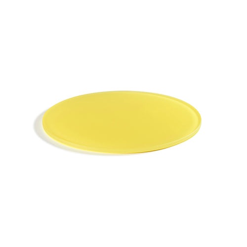 Tray, (2 to 4 weeks lead time), 11-3/4" dia. x 1/2"H, round, stackable, shockproof, thermal shock resistant (-148°F to + 176°F), food safe, non-porous, dishwasher safe, Nacryl® resin, lemon, Mealplak (10 year warranty against UV, when used with translucent side up, contact factory for details) Made in France