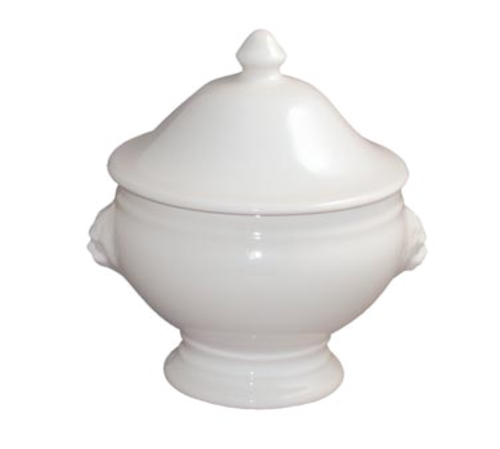 (E761AC) Lion Head Soup Bowl, 12-1/2 oz., 4-1/4" dia. x 6-1/2"H, with lid, safe for oven, microwave, freezer & dishwasher, glazed, porcelain, white, French Classics (US stocked item)