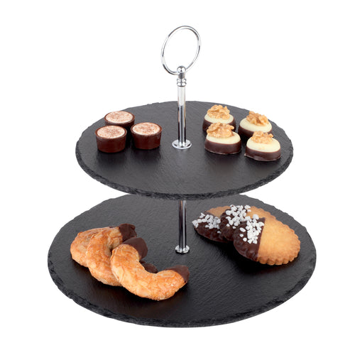 Natural Slate Display Stand, 10" dia. x 9"H, round, hand wash, Paderno, Tabletop
