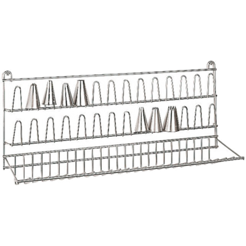Pastry Tip Dryer, 19-5/8"L x 5-1/8"W x 9-1/2"H, holds (28) large tips, wall mount, stainless steel, Paderno, Bakeware (Special Order Item)