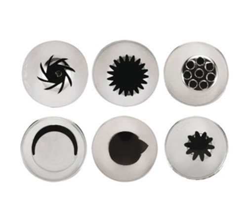 Decorating Tubes/Pastry Tips, 6 piece, 2-3/8"H, various openings, seamless 18/10 polished stainless steel, Paderno, Bakeware (Special Order Item)