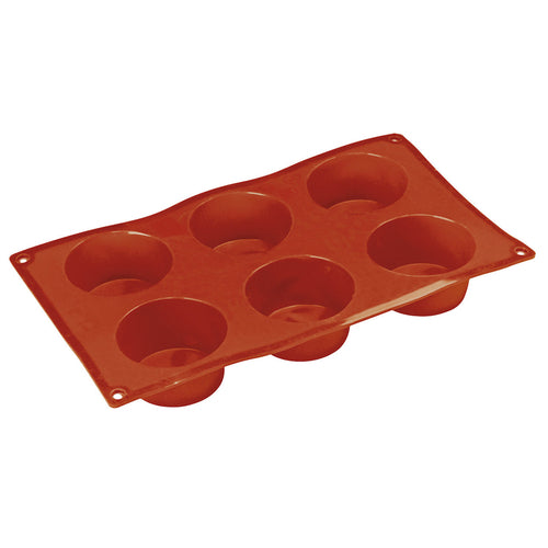 Mold, muffin, mini, 4 oz., (6) 2-3/4" dia. x 1-1/2"H molds, 11-7/8"L x 6-7/8"W O.A., flexible, temperature resistance -40° F to 500° F, reusable, non-stick, silicone, red, Paderno, Bakeware