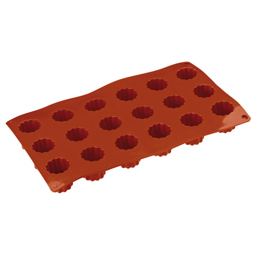 Mold, cannelle, mini, .63 oz., (18) 1-1/8 dia. x 1-1/8"H molds, 11-7/8"L x 6-7/8"W O.A., flexible, temperature resistance -40° F to 500° F, reusable, non-stick, silicone, red, Paderno, Bakeware