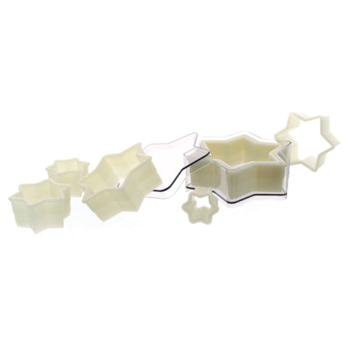 Pastry Cutter Set, star, 7-piece, with container (5-3/8" x 2"), heat resistant up to 320°, cutter sizes: 1-5/8", 2-1/8", 2-3/4", 3-3/8", 4", 4-1/2", 5-1/8", nylon, Paderno, Bakeware (Special Order Item)