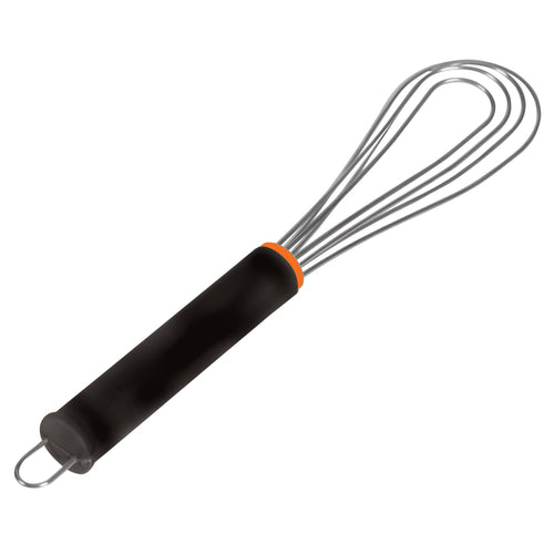 Flat Whisk, 10-5/8"L, flat, black thermoplastic handle, approx. heat resistance up to 390°F, dishwasher safe, stainless steel, Paderno, Bakeware