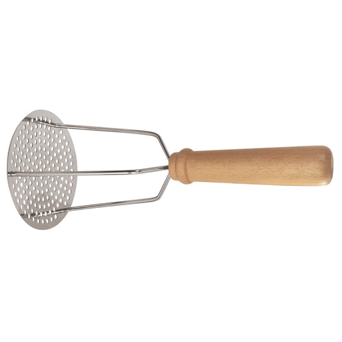 Potato Masher, 3-3/4" dia. x 9-1/4"L, round, stainless steel head, and wood handle, Paderno, Tools & Utensils
