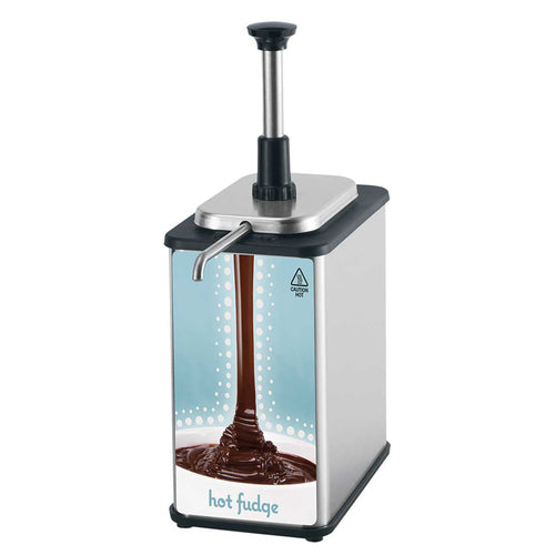 EZT-S SINGLE EZ-TOPPER™, DUAL POUCH TOPPING WARMER, non-heated spout, uses thermostatically-controlled, dry heat, dispenses from one 48 oz. topping pouch with 16 mm center fitment, while warming a second in reserve, includes support for occasions when pre-heating a second pouch is not needed, stainless steel pump, serves 1 oz., which can be reduced in 1/8 oz. increments with supplied collars, includes magnetic hot fudge and caramel merchandising signs, stainless steel, 200 watts, 120v/60/1-ph, 1.7 amps, cord, NEMA 5-15P, cULus, NSF