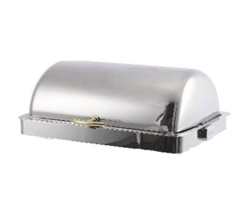 Rondo Built-in Chafer, full size, 8.4 to 14.8 qt., 26"L x 18-9/10"W x 9"H, rectangular, roll top lid, 12" x 20" insert pan, mirror polished trim ring, all angle resistance axle system, heating element (9506/1) with adjustable control, gold accents, 18/10 stainless steel, mirror polish finish, NSF, 110-120/60/1-ph, 5.8 amp, 700 watt