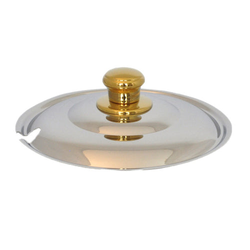 Soup Tureen Lid, with notch for ladle, for 6 quart tureen, with gold handle, polished stainless steel, chrome