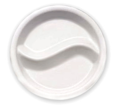 Dish Insert, divided, 2-1/3 qt., 11-7/8" dia. x 1-3/4"D, round, oven proof white porcelain (for 30 cm. round chafing dishes) (contact factory for price)