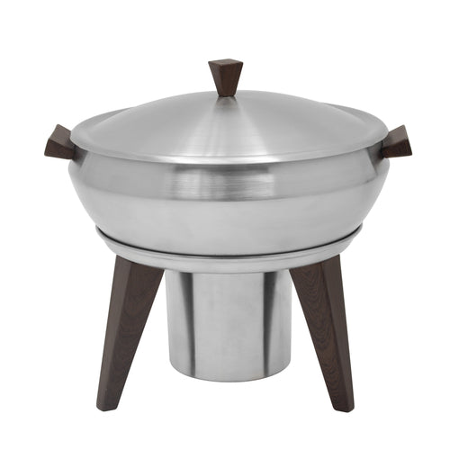 Skyra™ Wynwood Induction Chafing Dish, 2.5 qt., 10" dia. x 11"H, round, with insert, lift-off lid, fuel holder & display stand, brushed stainless steel, waterproof wood finish legs (contact factory for price)