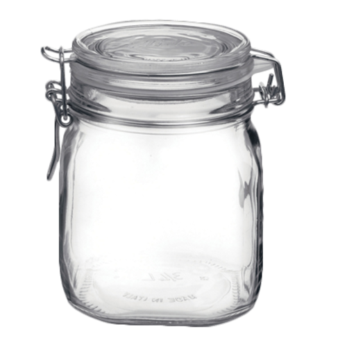 Jar, 29 oz., (H 5-3/8"; M 5-1/8"; T 3-5/8"; B 3-3/4") glass, clear, Bormioli Rocco, Fido (minimum = case quantity) (stock item)