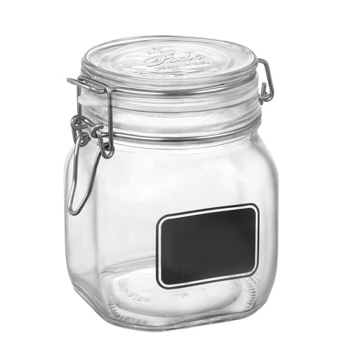 Chalkboard Jar, 29 oz., (H 5-3/8"; M 5-1/8"; T 3-5/8"; B 3-3/4") with chalkboard label, glass, Bormioli Rocco, Fido (minimum = case quantity) (stock item)