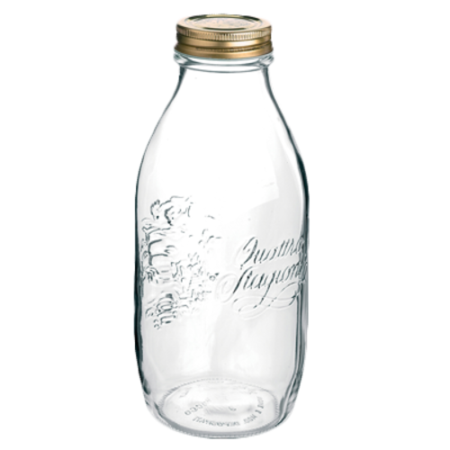 Stagioni Bottle, 33-3/4 oz., clear, with metal lid, Bormioli Rocco, Quattro (H 9"; M 4": T 2-1/8"; B 3-3/8") (minimum = case quantity) (stock item)