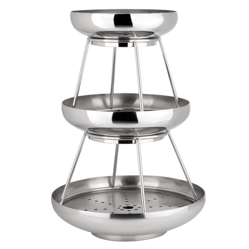 Seafood Stand, 3-tier, 17"H, 11-1/2" dia., 9-1/2" dia., & 7-7/8" dia., coupe, with removable drain plates, straight sided, Williamsburg Metal (minimum = case quantity) (stock item)