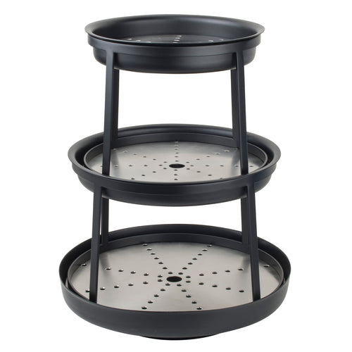 Seafood Stand, 3-tier, 12-1/4" dia. x 15-1/2"H, round, 12" dia. base tier, 10" dia. middle tier, 8" dia. top tier, with removable drain plates, straight sided, 18/8 stainless steel, powder coated finish, black, Williamsburg Metal (minimum = case quantity)