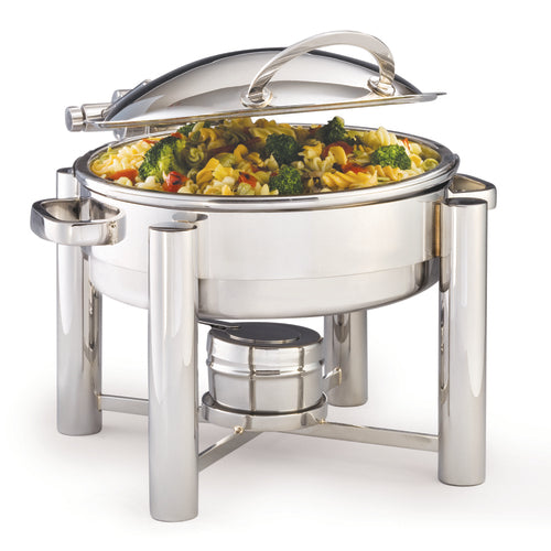 Chafer, 4 qt., round, uses fuel heat, hinged cover stops in any position, with food pan, all welded, condensation retrieval, induction ready, stainless steel DW Haber, Tempo (minimum = case quantity) (non-stock item)